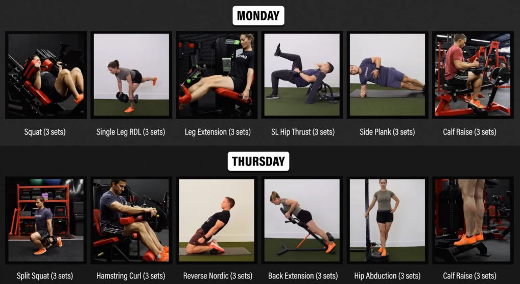 برای مثال، اگر شما کسی هستید که دو بار در هفته پاهای خود را در باشگاه تمرین میدهید، تمرینات شما ممکن است به این شکل باشد: