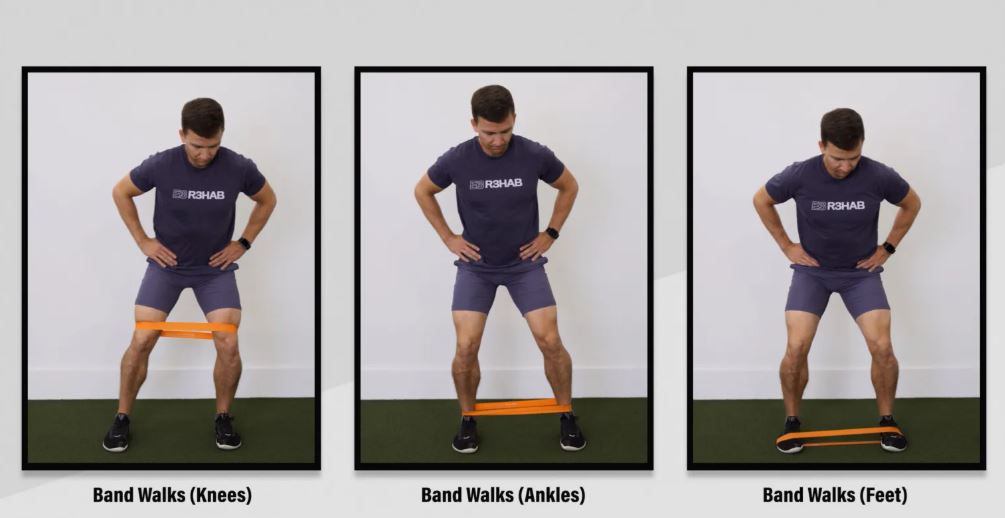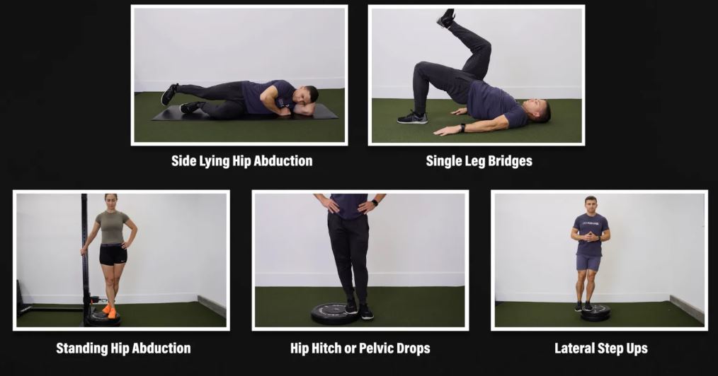 سایر تمرینات رایج عبارتند از راه رفتن با کش که میتوان آن را با بستن کش به دور زانو، مچ پا یا پا انجام داد، و تمرین پایین آوردن لگن که شامل پایین آوردن و بالا بردن لگن با شل کردن و منقبض کردن عضلات سرینی پای ایستاده است.