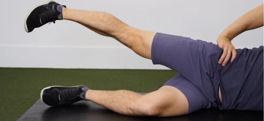 - ابداکشن لگن به پهلو خوابیده (با چرخش داخلی پا)