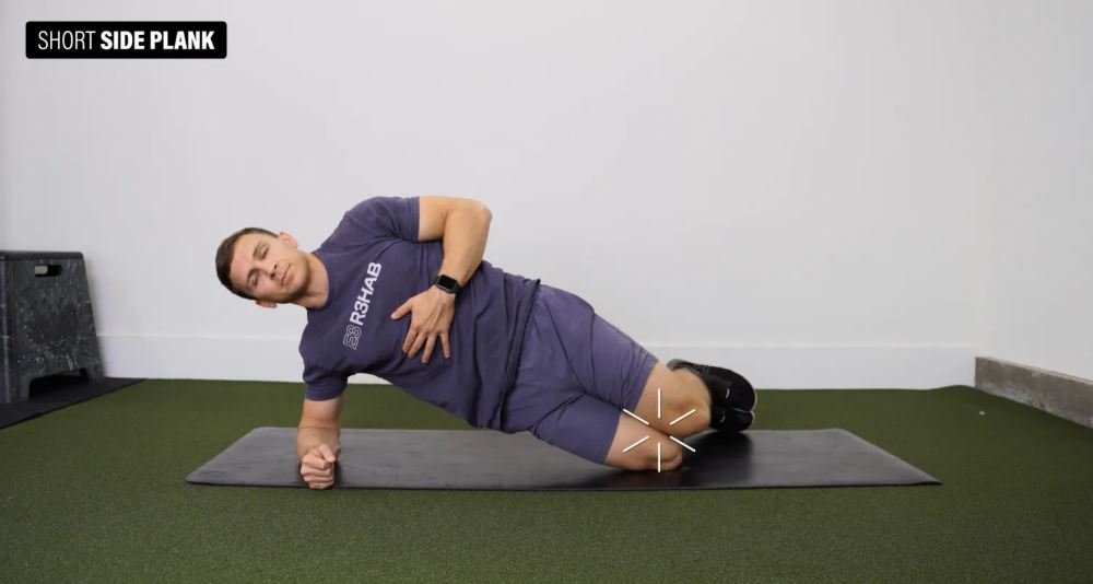 اگر این حرکت برایتان خیلی سخت است، میتوانید یک پلانک کوتاه از پهلو روی زانوهایتان انجام دهید.