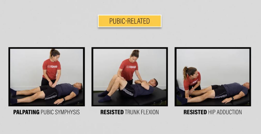درد در سمفیز شرمگاهی، جایی که سمت چپ و راست لگن شما به هم میرسند، و استخوانهای کنار آن، نشانه بارز درد کشاله ران مرتبط با شرمگاه است. هیچ آزمایش مقاومتی خاصی برای درد کشاله ران مرتبط با شرمگاه وجود ندارد، اما اگر هم خم شدن تنه در برابر مقاومت و هم نزدیک شدن مفصل ران در برابر مقاومت، علائم را در ناحیه شرمگاهی ایجاد کنند، احتمال آن بیشتر است.