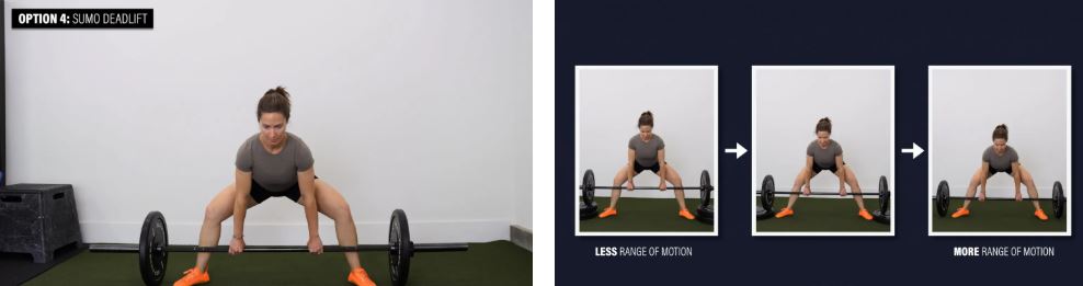 به طور کلی، همه این تغییرات را میتوان با محدود کردن میزان خم شدن مفصل ران که به سمت آن حرکت میکنید، آسانتر کرد. با افزایش دامنه حرکت، بار و/یا حجم، میتوان آنها را چالش برانگیزتر کرد.