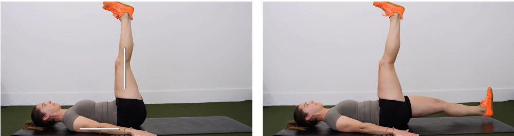 برای انجام حرکت Straight Leg Dead Bug، به پشت دراز بکشید و پاهایتان را صاف در هوا نگه دارید. به آرامی یک پا را پایین بیاورید تا درست بالای زمین قرار گیرد و سپس به حالت شروع برگردید و این حرکت را در سمت دیگر تکرار کنید و به تعداد تکرارهای تجویز شده در هر طرف، به طور متناوب انجام دهید. سعی کنید در حین انجام حرکت، کمرتان قوس پیدا نکند.