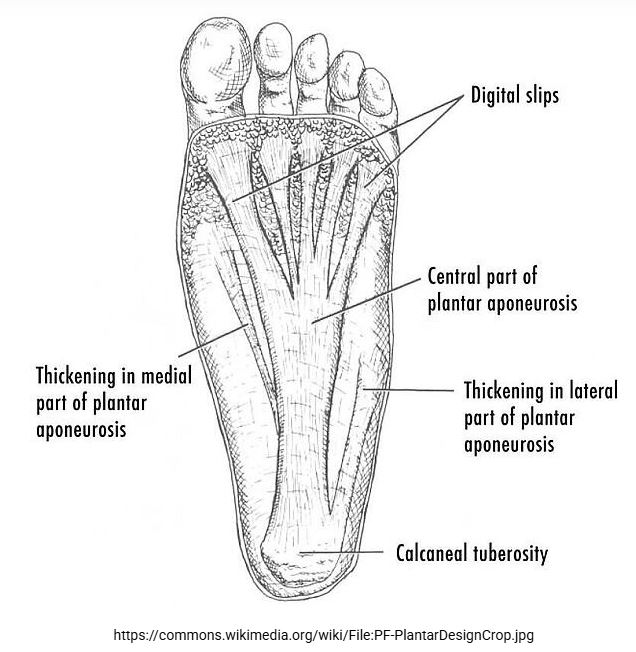 فاشیای کف پا یک بافت همبند متراکم و فیبری است که به طور پیچیدهای به پاشنه، انگشتان پا و بسیاری از عضلات و ساختارهای اطراف کف پا متصل است [25]. این بافت به گونهای طراحی شده است که یک فرستنده غیرفعال نیروهای مکانیکی و همچنین پشتیبان قوسهای طولی و عرضی داخلی باشد. علاوه بر این، اعتقاد بر این است که در حس عمقی ثانویه به وجود گیرندههای مکانیکی مانند اجسام پاچینی و رافینی نقش دارد [25،26].