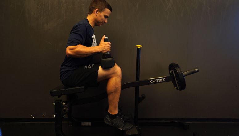 حرکتی که در بالا توضیح داده شد ممکن است به عنوان یک تمرین مستقل برای درمان فاشیای کف پا کافی نباشد، و تحقیقات اخیر اهمیت قدرت و استقامت عضله کف پا را در ارتباط با سایر آسیب شناسیهای اندام تحتانی نشان داده است [32،33]. به همین دلایل، حرکت بعدی، حرکت سنتی بالا بردن پاشنه در حالت نشسته با کفش است که هدف آن هدف قرار دادن ترجیحی عضله کف پا است. این حرکت همچنین بر فاشیای کف پا، آشیل و بقیه مجموعه پا و مچ پا تأثیر میگذارد. این کار را میتوان با استفاده از دستگاه یا با وزنههایی که روی رانها قرار داده شده است، در حالی که پاهایتان روی پله است، انجام داد.